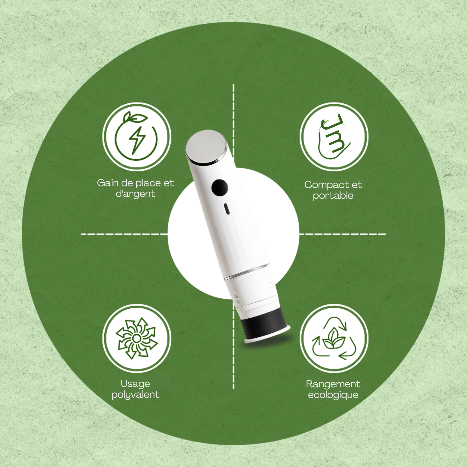 Le sous-vide portatif aspire l’air présent dans les sacs ou contenants compatibles grâce à une valve dédiée. En quelques secondes, l’air est retiré, ce qui permet de ralentir l’oxydation des aliments et de prolonger leur fraîcheur, sans effort ni installation complexe.